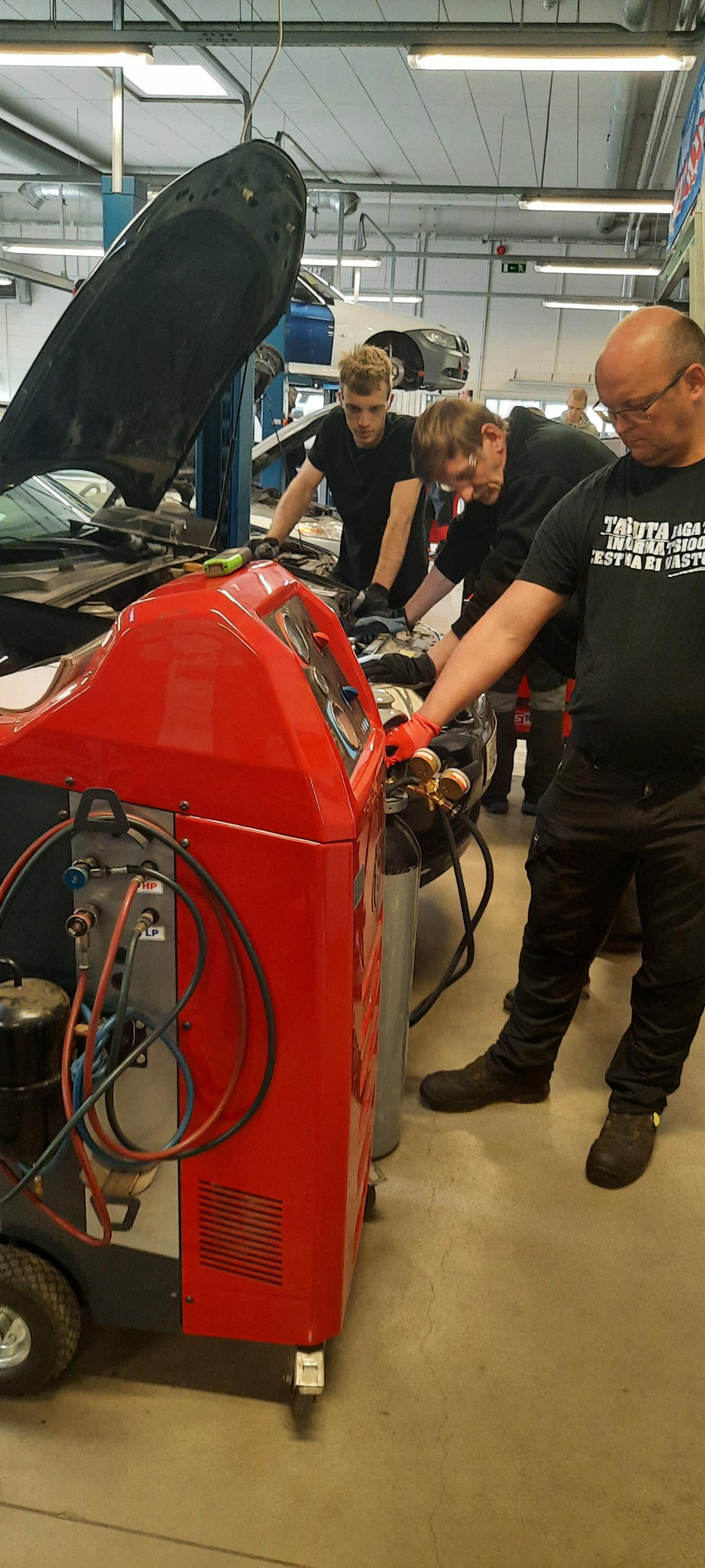 Täna, teisel koolituspäeval saavad õppijad kooli autoosakonna õppetöökojas praktiliselt harjutada kliimaseadme täitmist ja soovi korral oma isiklikku autot õppeprotsessis kasutada.