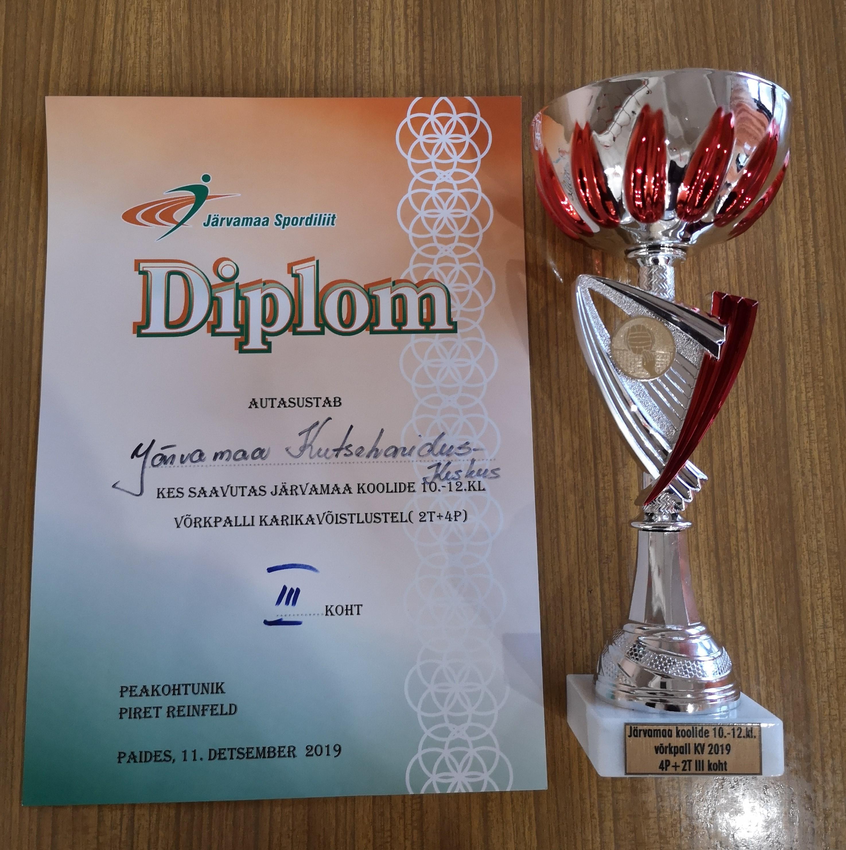 11.detsembril 2019 toimusid Paide E-Piima Spordihallis Järvamaa koolide 10.-12.klasside vahelised võrkpalli karikavõistlused. Meie kooli võistkond saavutas auhinnalise kolmanda koha. Palju õnne!