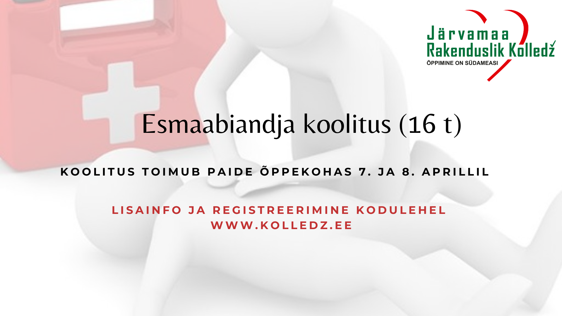 7. ja 8. aprillil toimub Paide õppekohas 16-tunnine esmaabiandja koolitus.