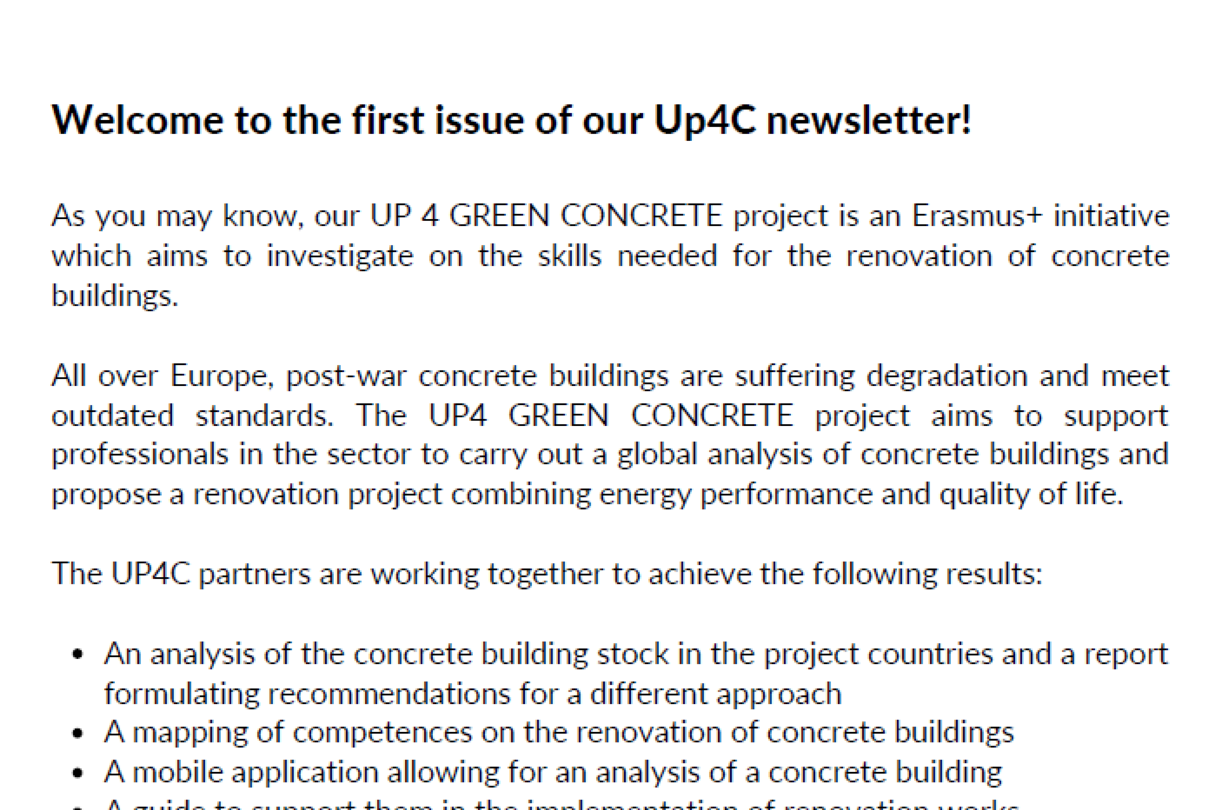Newsletter of the Erasmus+ strategic project Upskill Professional FOR Sustainable renovation plans of CONCRETE buildings