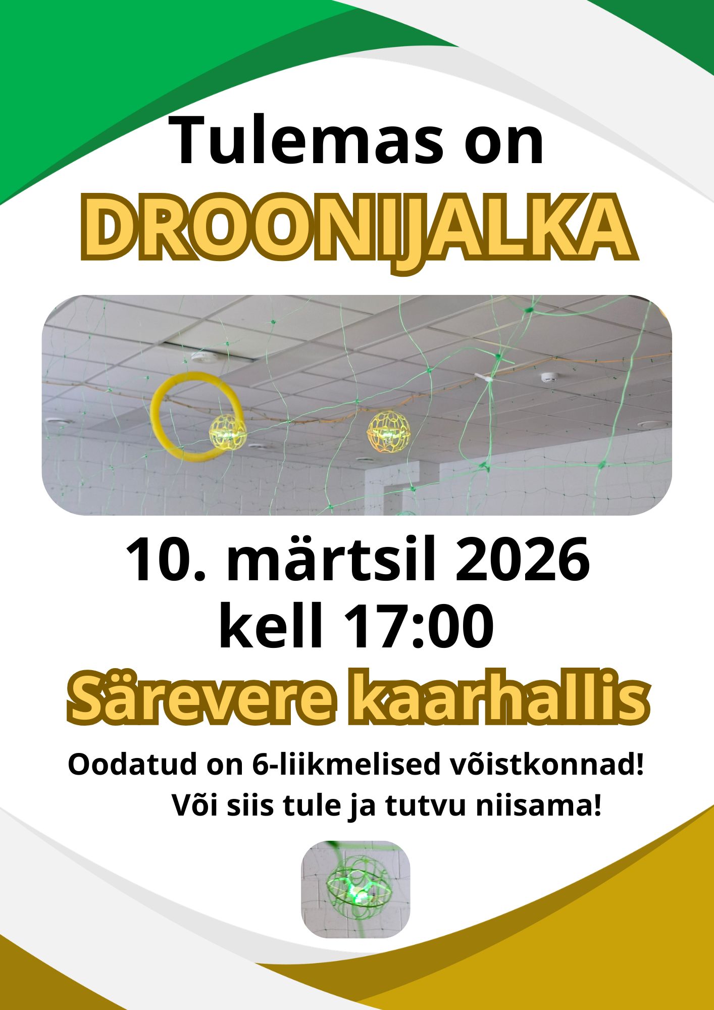 10. märtsil 2026. a kell 17:00 toimub Särevere õppekoha kaarhallis koolisisene DROONIJALKA!