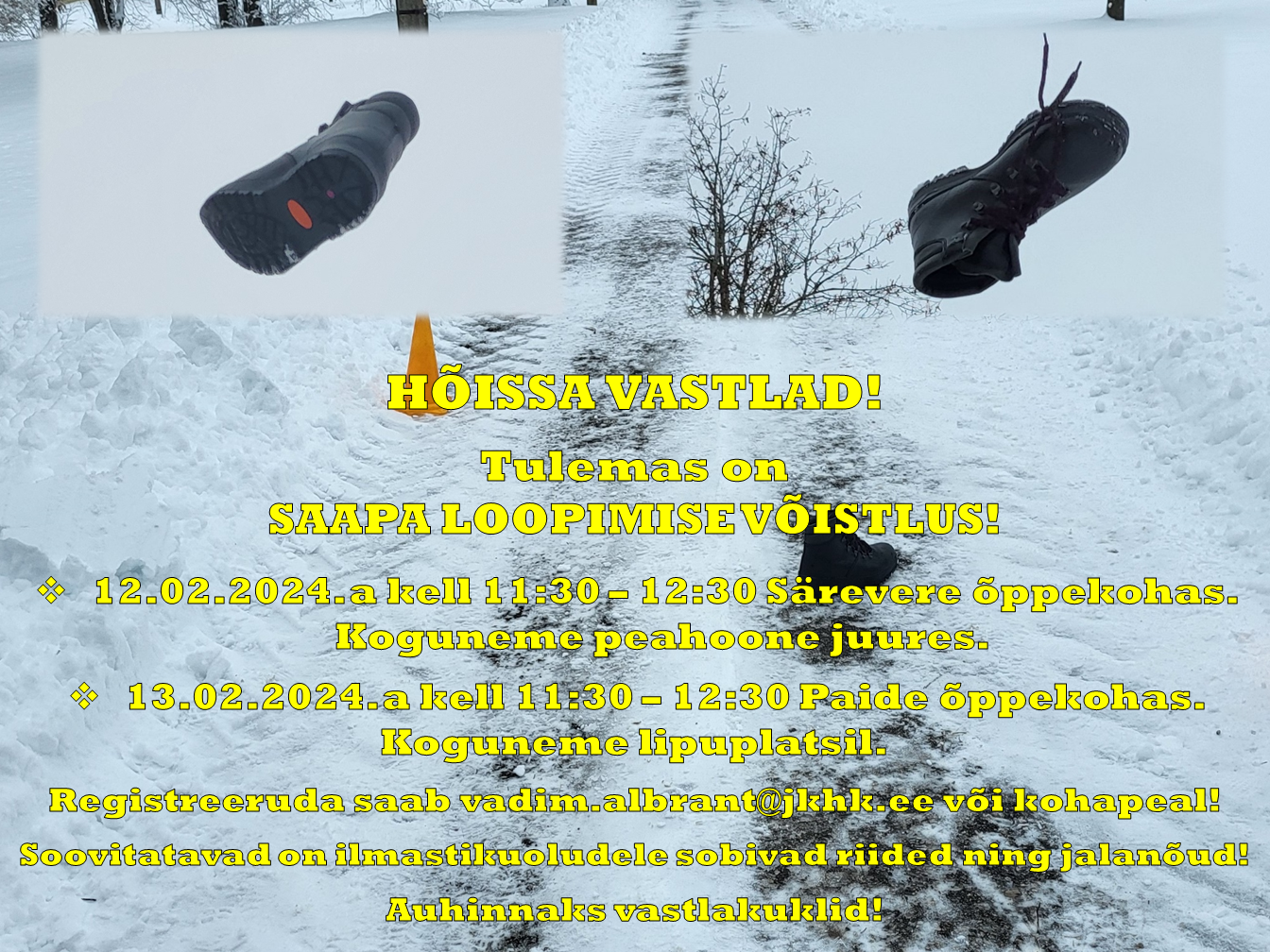 - 13.02.2024. a kell 11:30 – 12:30 Paide õppekohas. Koguneme lipuplatsil.