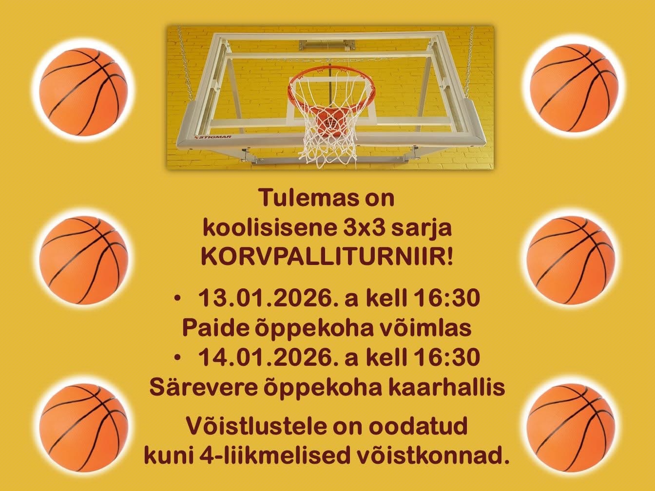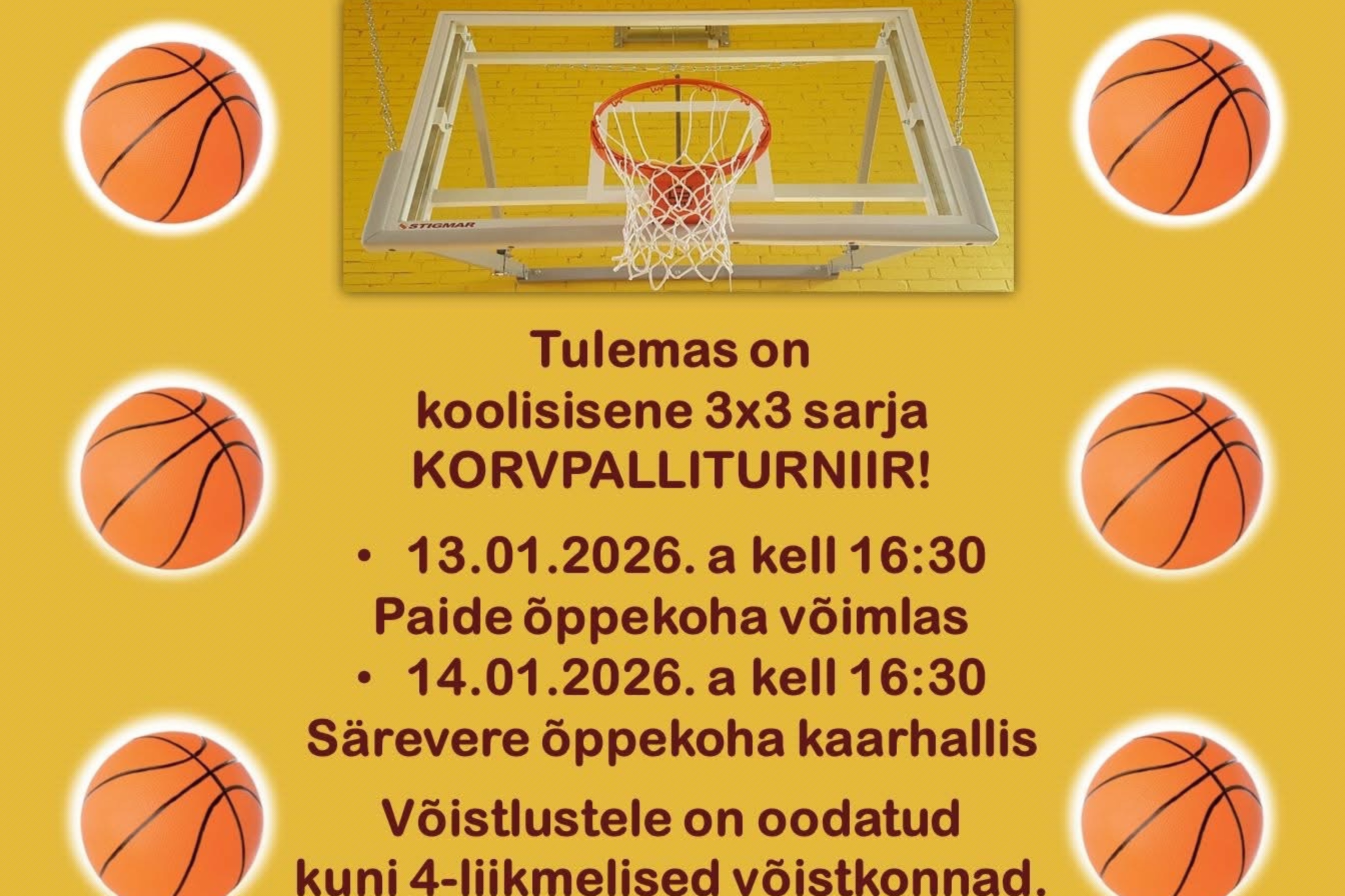 - 13.01.2026. a kell 16:30 Paide õppekoha võimlas;