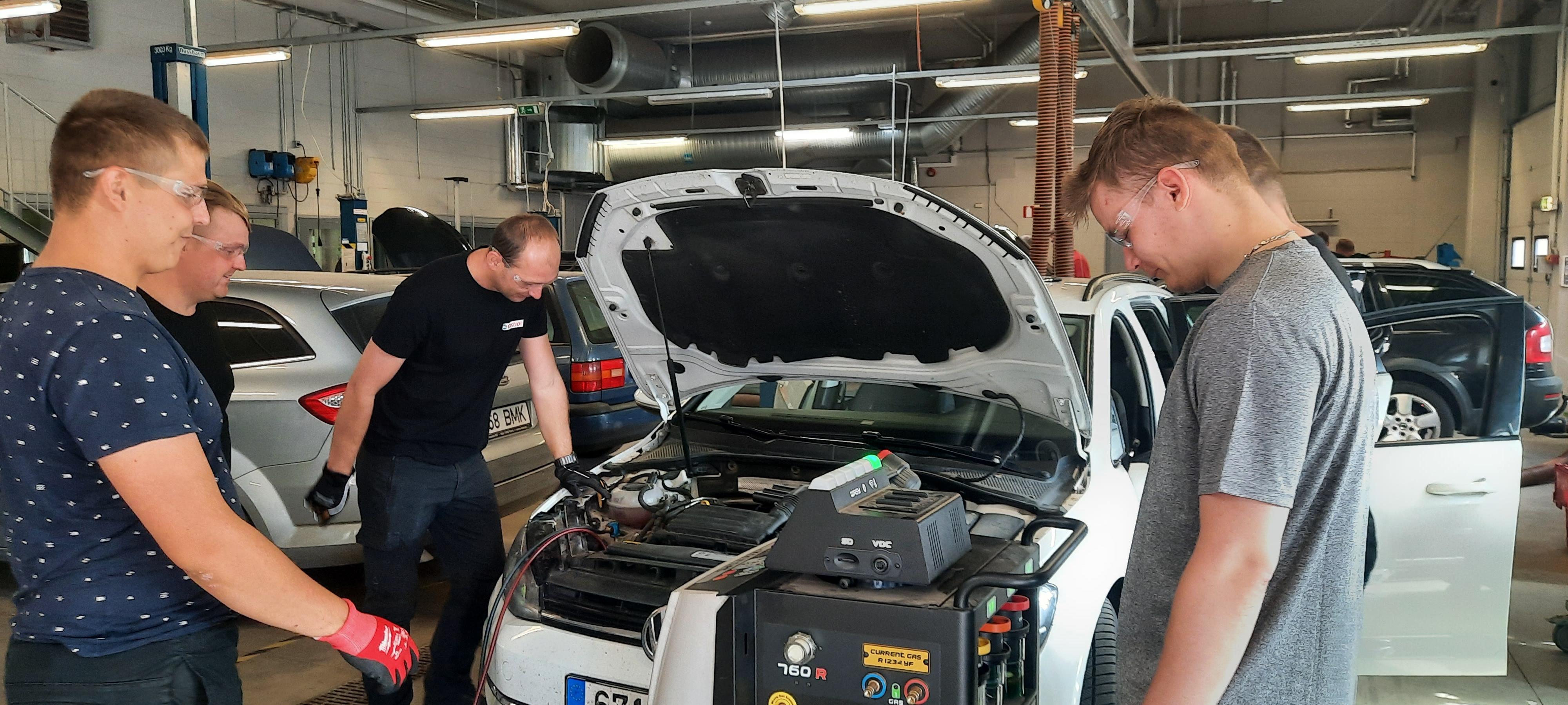 Täna, teisel koolituspäeval saavad õppijad kooli autoosakonna õppetöökojas praktiliselt harjutada kliimaseadme täitmist ja soovi korral oma isiklikku autot õppeprotsessis kasutada.