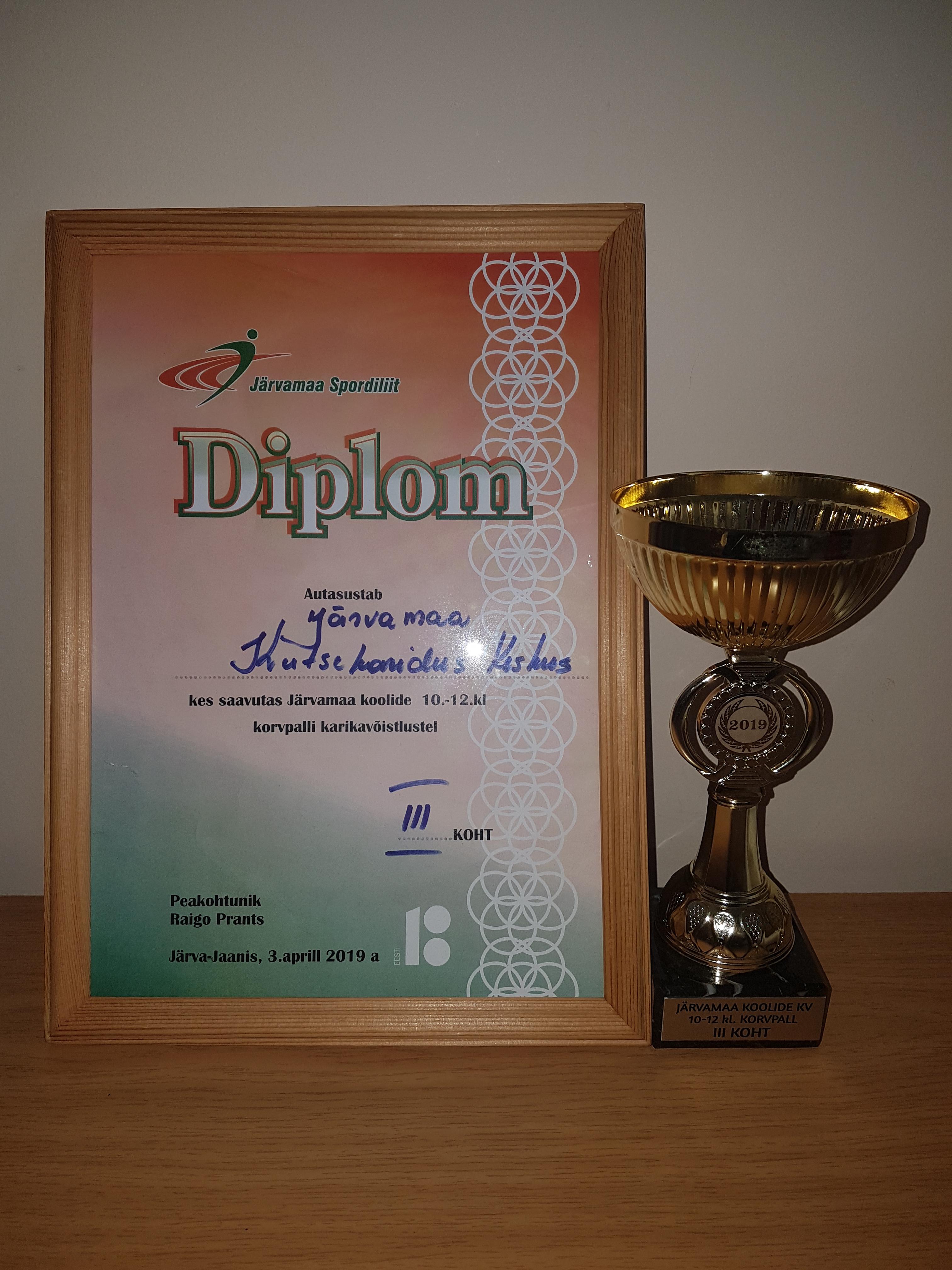 3.aprillil 2019 toimusid Järva-Jaani Gümnaasiumis Järvamaa koolide 10.-12.klasside vahelised korvpalli karikavõistlused. Meie kooli noormehed saavutasid auhinnalise kolmanda koha. Palju õnne!