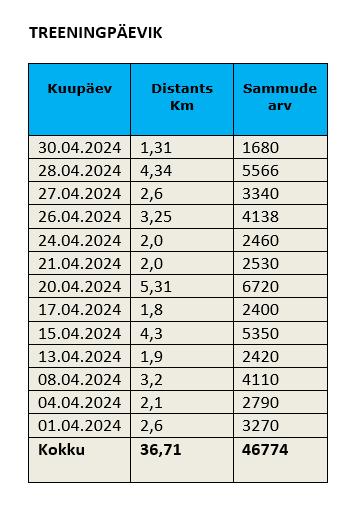 Täname veelkord kõiki aktiivseid osalejaid ning loodetavasti ei piirdu aktiivne liikumine mitte ainult aprillikuuga, vaid enda südame ja tervise heaolu nimel jätkub aktiivne tegutsemisind ka edaspidigi.