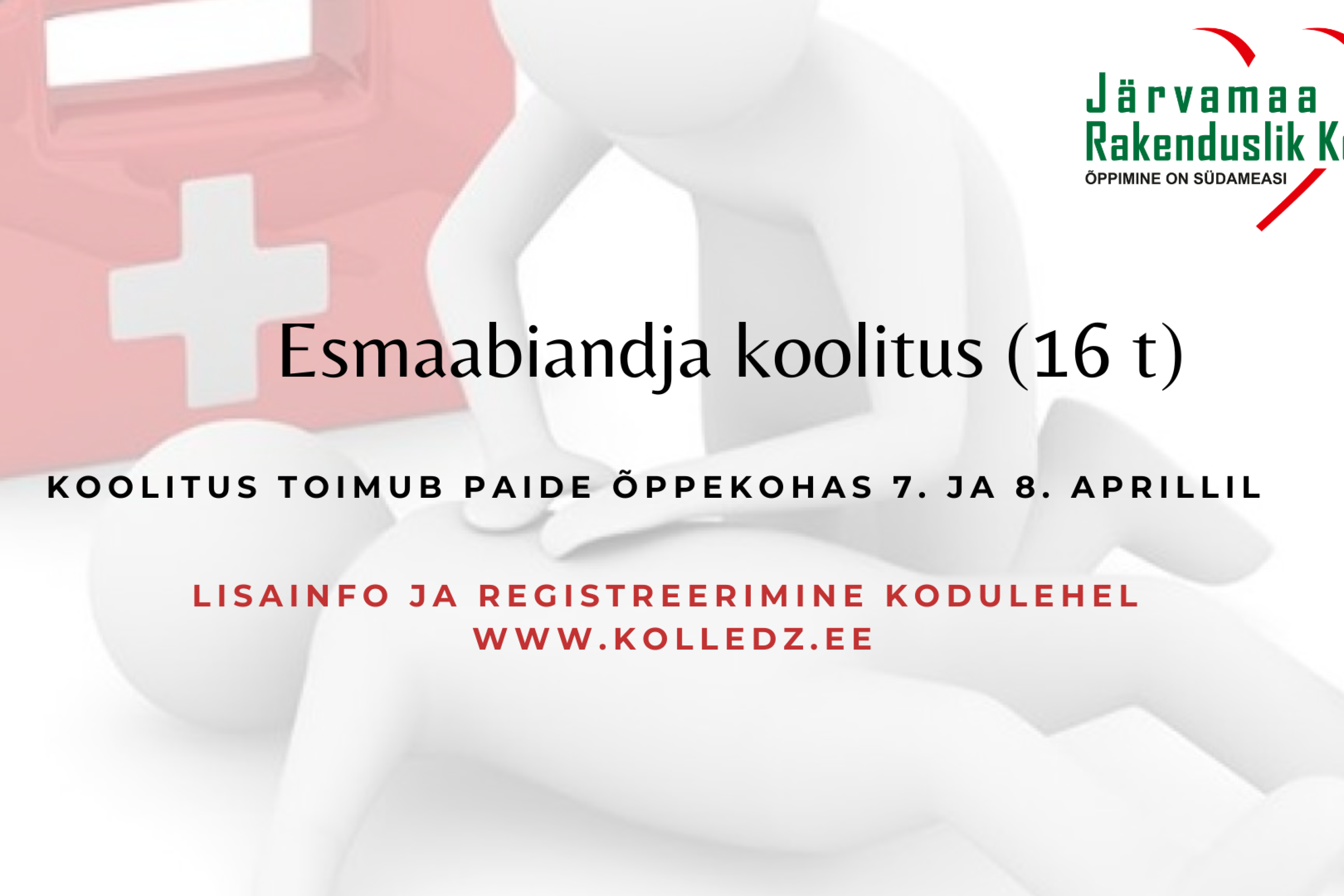 7. ja 8. aprillil toimub Paide õppekohas 16-tunnine esmaabiandja koolitus.