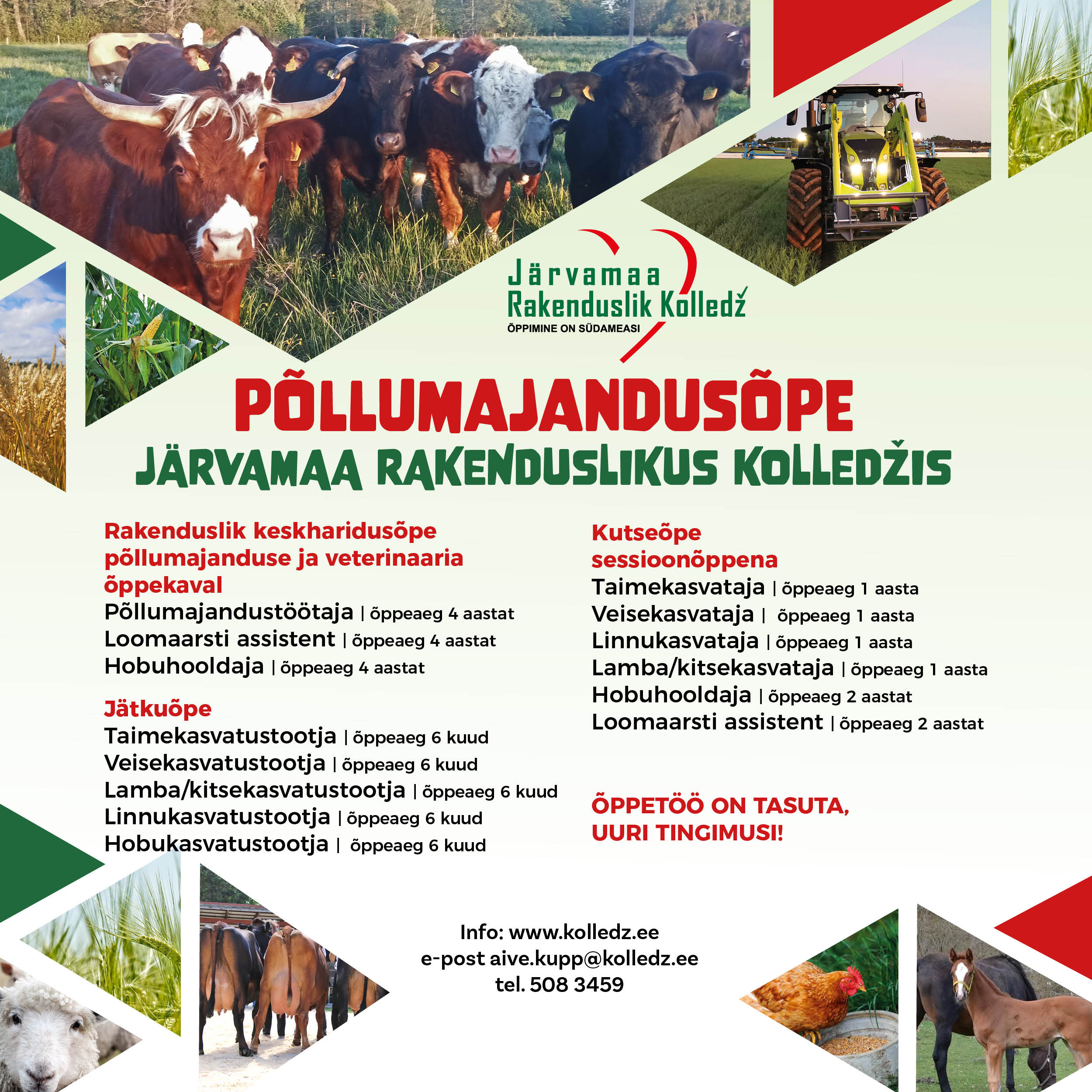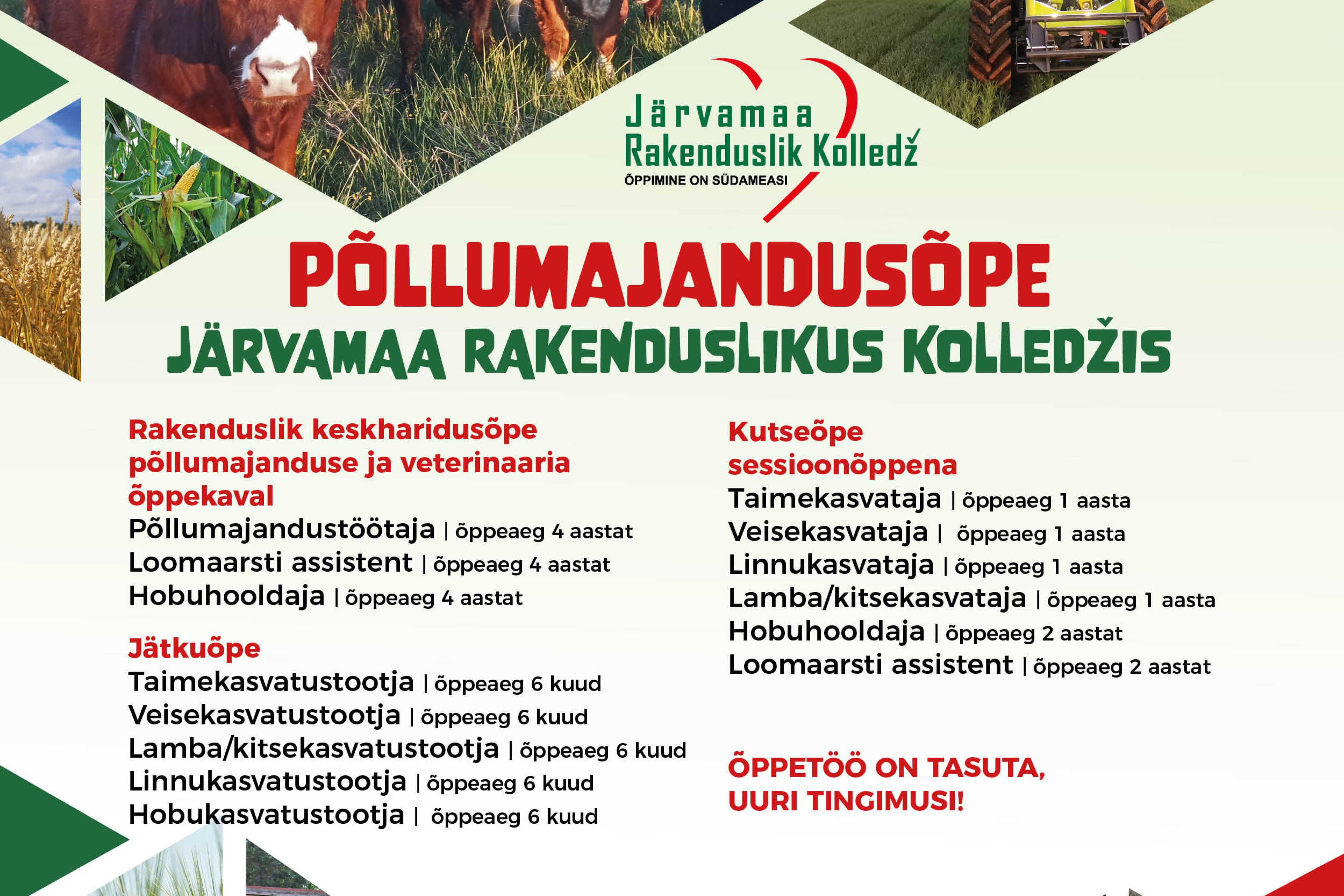 Tule õpi põllumajandust (taimekasvatus, loomakasvatus) Järvamaa Rakenduslikus Kolledžis!